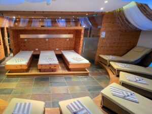 Nach einem Tag im Schnee ist Entspannung angesagt – und die findet man im Zirben-Spa des Hotels. Verschiedene Saunen, ein gemütlicher Ruheraum und das Hallenbad bieten die perfekte Erholung. Der Duft von Zirbe und Holz schafft dabei eine Atmosphäre, in der man automatisch zur Ruhe kommt.