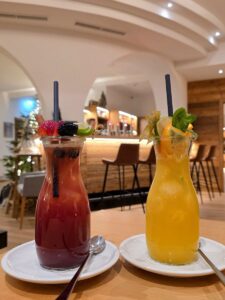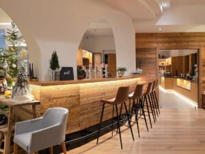 Abends tauchen wir in der Lounge & Bar ein in gemütliche Stunden vor dem lodernden Kaminfeuer, mit coolen Drinks und leckeren Schmankerln: Von der herzhaften Almjause über mediterrane Platten bis hin zu knusprigen Toasts und Pizzen – pure Freude!