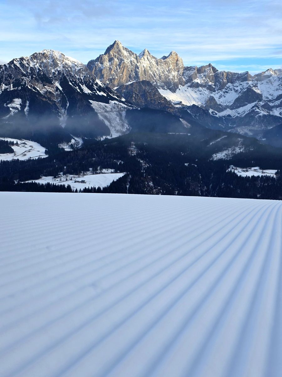 Filzmoos ist und bleibt einer unserer absoluten Lieblingsplätze – ein Ort, in den wir uns beim ersten Besuch sofort verliebt haben. Abseits vom Trubel, mitten in einer atemberaubenden Natur, lockt ein kleines, aber feines Skigebiet, wo wir nie an den Liften anstehen und stattdessen jede Sekunde voll auskosten können. Das Dachstein-Panorama und die markante Bischofsmütze begleiten uns auf bestens präparierten Pisten – einfach herrlich!