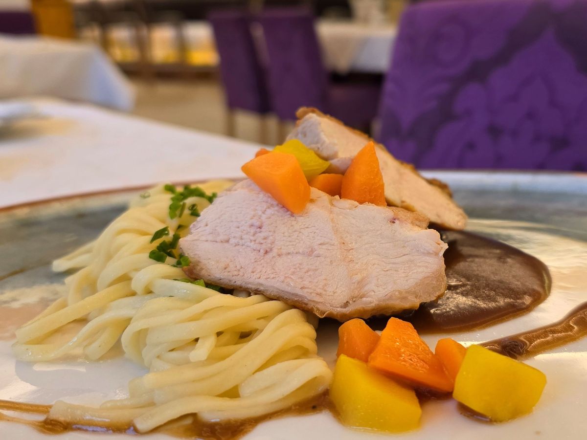 Beim ausgiebigen Frühstücksbuffet findet man alles, was das Herz begehrt. Nach einem sportlichen Tag in den Bergen wartet mit der Nachmittagsjause eine Stärkung für alle hungrigen Skifahrer. Zum Abschluss des Tages wartet schließlich noch das 5-gängige Abendmenü auf uns. In Sachen Küchenphilosophie versucht man heimische Spezialitäten aus dem Pinzgau und Österreich mit Gerichten der internationalen Küche zu kombinieren. Dabei stehen unter anderem immer drei Hauptspeisen zur Auswahl. Die Gerichte sind allesamt sehr gut in den Komponenten abgestimmt und toll abgeschmeckt. Durch die schöne Anrichteweise erfreuen sich Gaumen und Augen gleichermaßen. An der gemütlichen Hotelbar lässt man einen perfekten Tag im Hinterthal dann noch genussvoll mit einem Drink ausklingen.