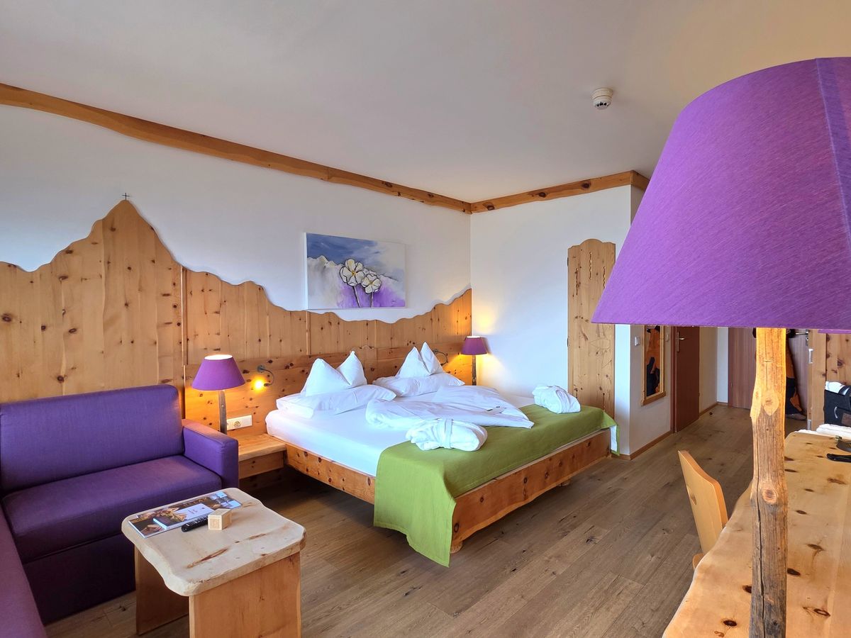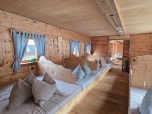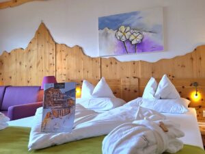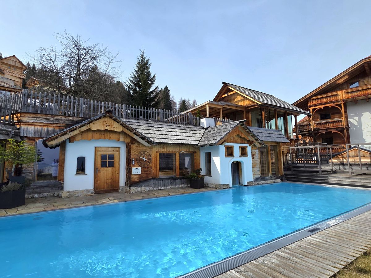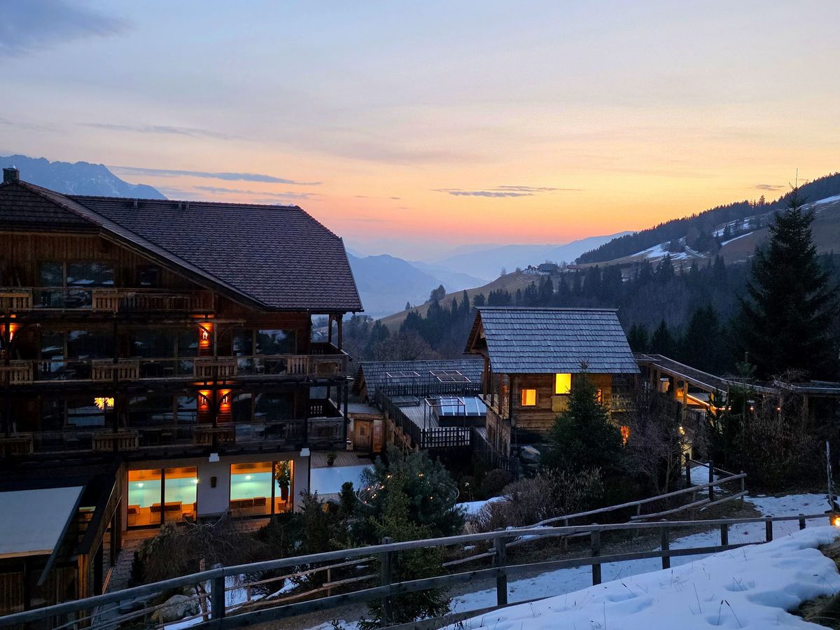 Zu Mittag gleiten wir direkt mit den Skiern wieder bis vors Hotel. Bei den milden Temperaturen lockt nun ein kleiner Spaziergang: Die idyllische Hofrunde rund um das Hotel bietet die perfekte Gelegenheit, tief durchzuatmen und die Natur zu genießen. Zwischen Waldrand und Wiesen trifft man sogar auf die süßen Alpakas des Hauses, die sich ebenso über die Sonne freuen wie wir.