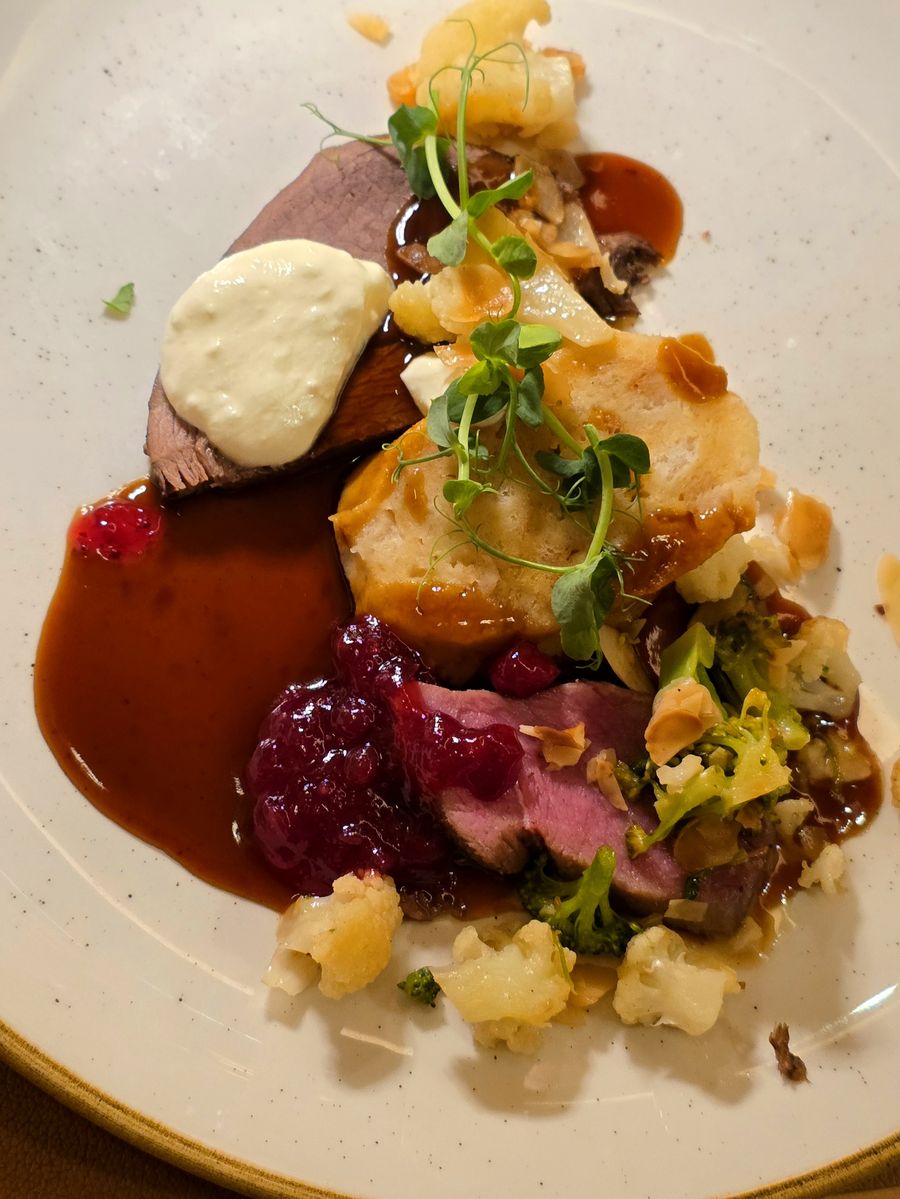 Der Abend wird zum kulinarischen Höhepunkt: ein 5-Gang-Gourmetmenü, das den Geschmack der Region mit moderner Raffinesse verbindet. Fleisch, Fisch, vegetarisch oder vegan – jedes Gericht ist ein kleines Kunstwerk, liebevoll angerichtet und voller Geschmack.