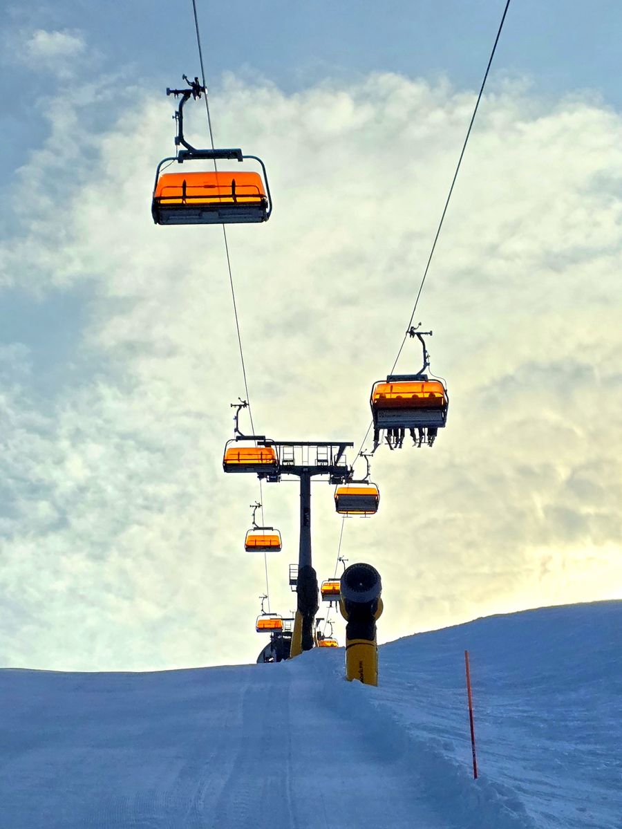 Mit dem Höfi Express geht es direkt vom Hotel hinauf ins Skigebiet. Ob sportlich auf den schnellen Carving-Pisten oder gemütlich die Sonne genießen – der Vormittag am Hauser Kaibling zeigt sich von seiner besten Seite. Die Bedingungen sind top, die Aussicht grandios. Besonders rund um den Alm-6er zeigt sich das Panorama noch herrlich winterlich – Schneekristalle glitzern in der Sonne, während sich die ersten Frühlingsgefühle langsam bemerkbar machen.